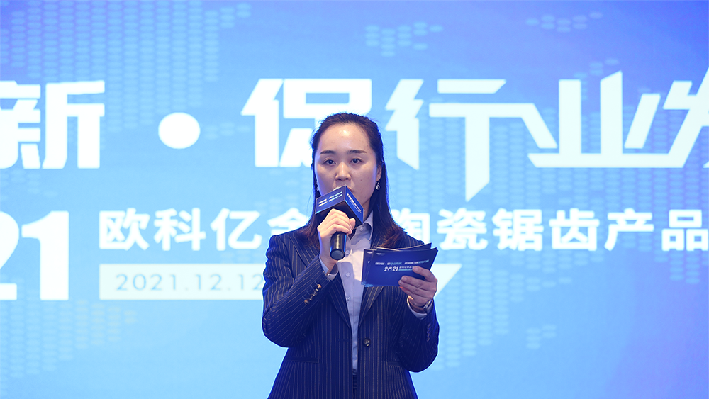 杭州博野公司刘占仁先生由于疫情原因未能到达会议现场,他通过录播的形式就金属陶瓷(冷锯)应用相关信息和现有市场发展情况与嘉宾做了分享。充分肯定了欧科亿金陶产品自主研发技术能力和现阶段所取得的成绩,同时亦表达了欧科亿金属陶瓷产品品质赶超国际竞品的美好愿景。